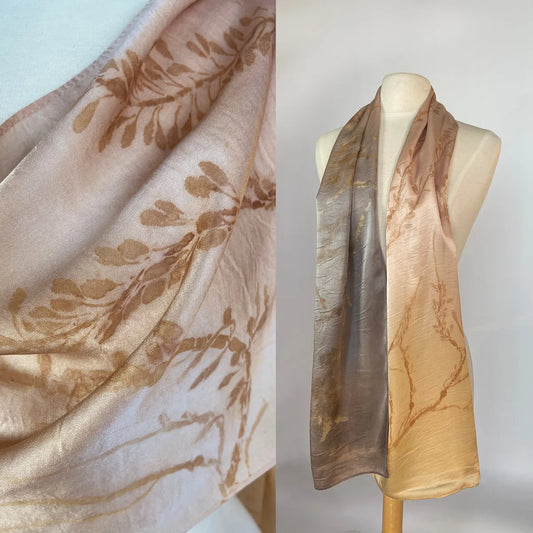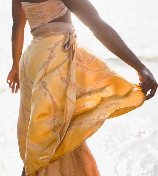 Explore Sashoonya’s featured projects —a collection of nature-inspired textile works and silk pieces naturally dyed and eco-printed with seaweed, marigold, avocado pits, and other plant materials. Each project reflects a deep connection to coastal landscapes, sustainable craft, and the art of slow making.