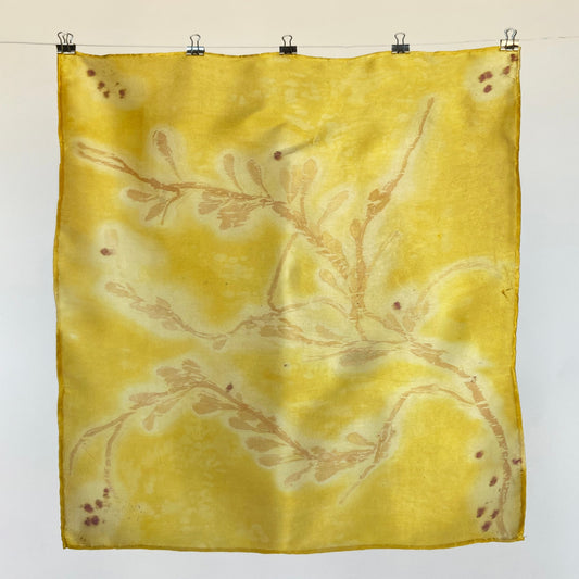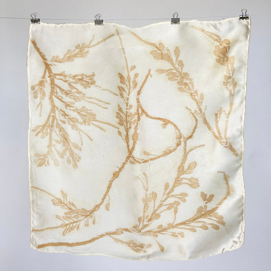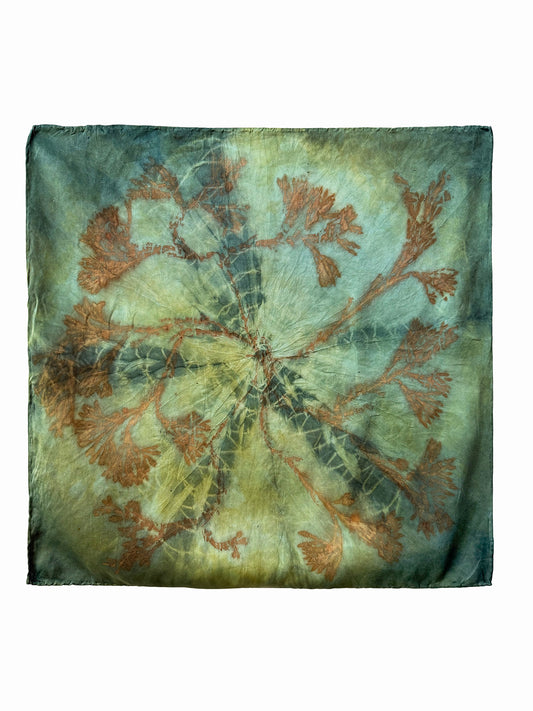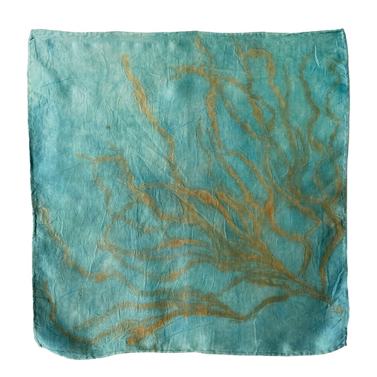 Blue Green World Bandana – Naturally Dyed Silk with Seaweed Print