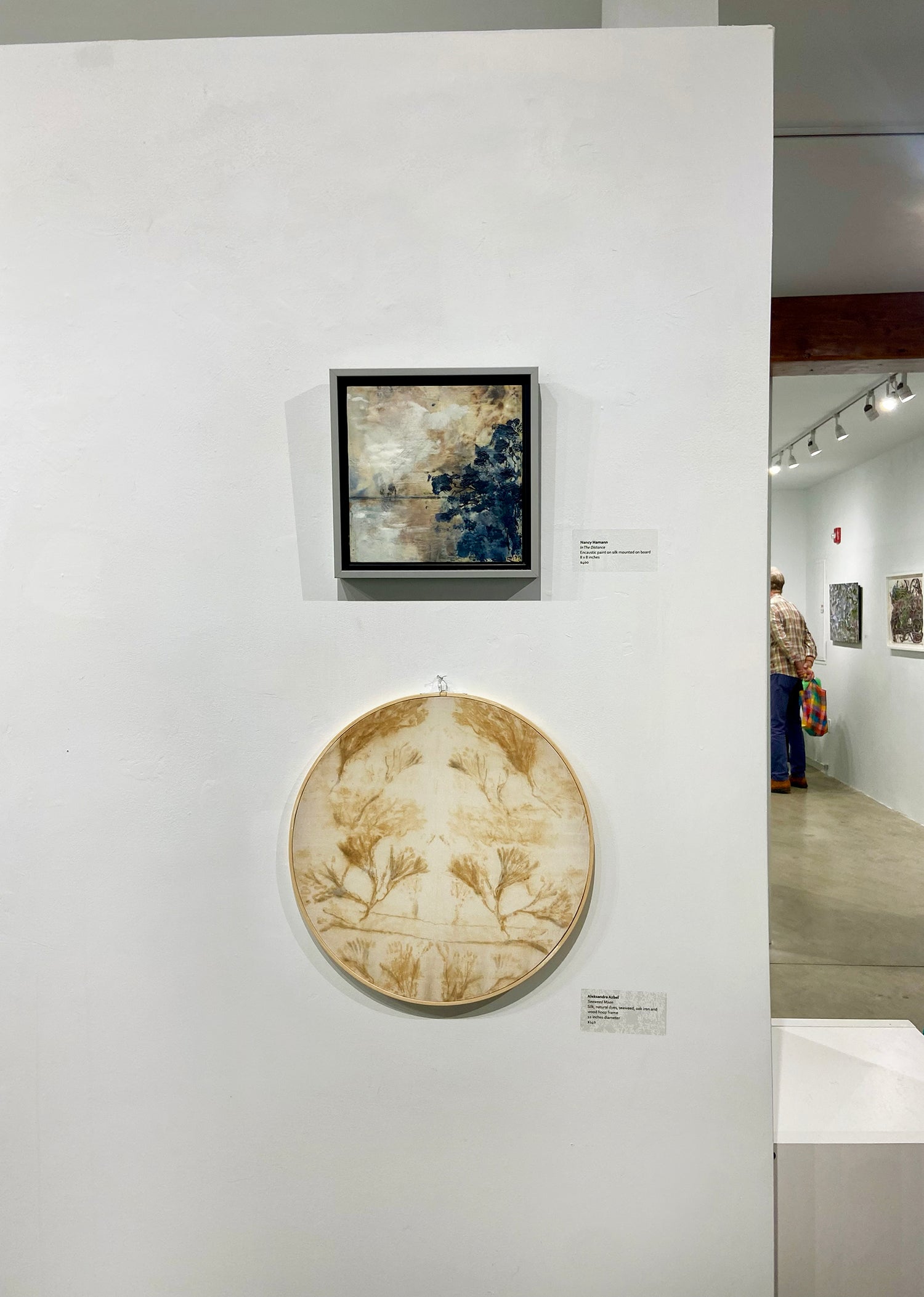I have a small piece in the current juried show, "In the Moment", at Galatea Fine Art Gallery in Boston, MA. The gallery is part of the New England Art Center and is well worth a visit. In the Moment features interpretations from a diverse group of artists, exploring how a moment can be fleeting, transformative, or deeply profound. My piece—one of the very first eco-prints I created about six years ago—combines the sense of movement through water with a quiet fixation on a full moon.